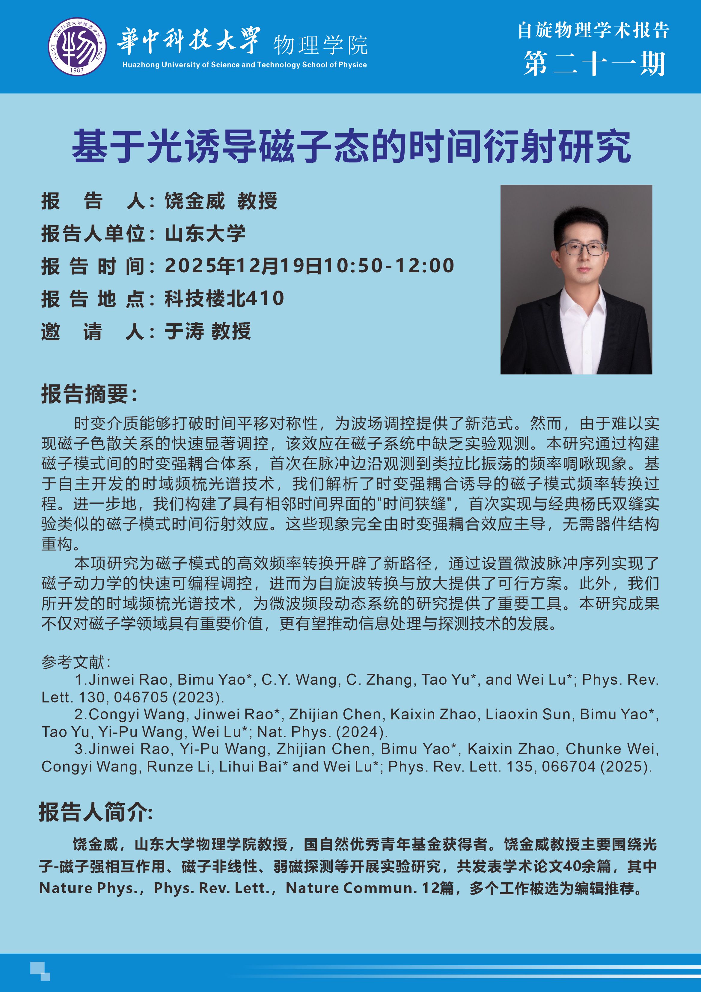 自旋物理学术报告第二十一期---饶金威